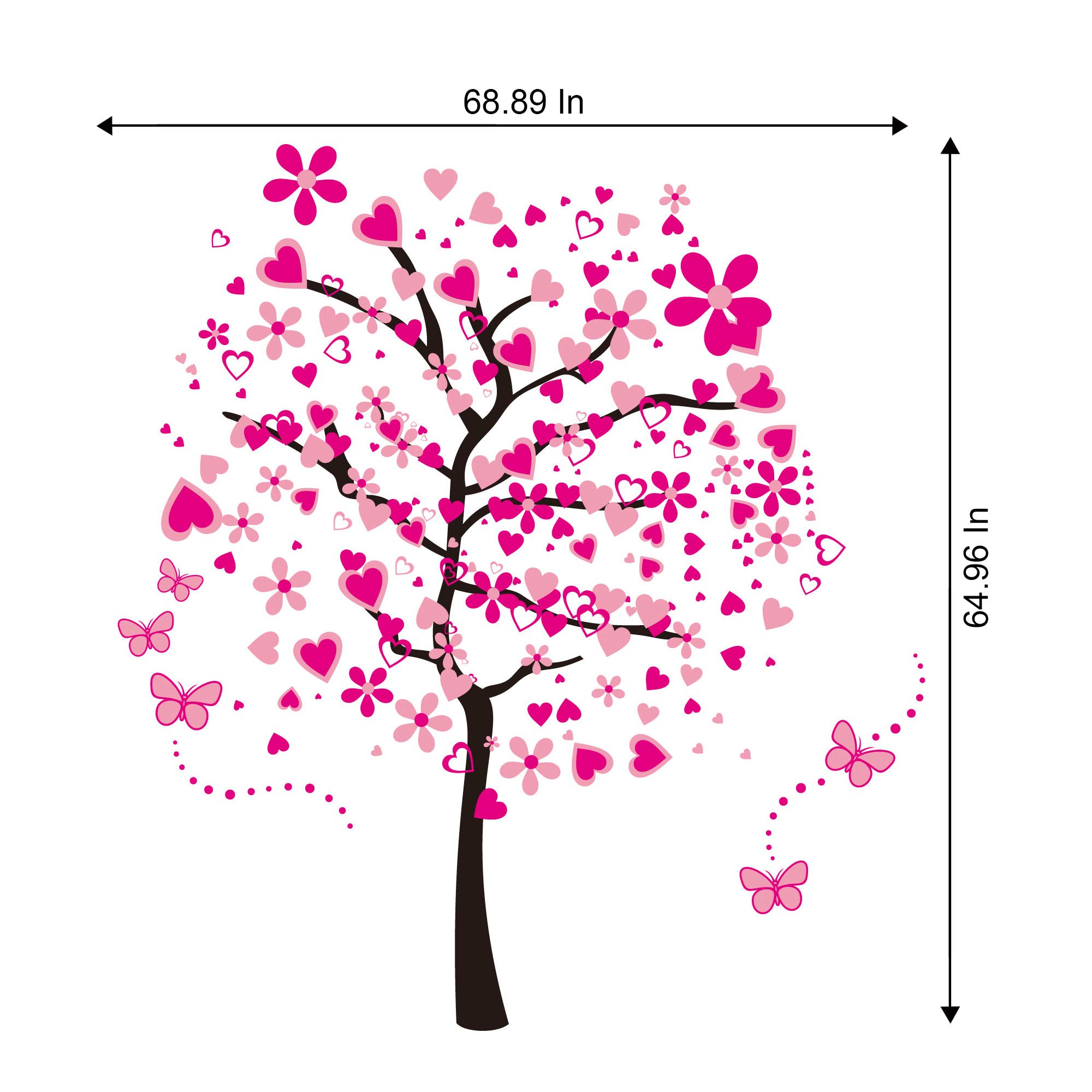Amazon Com Rw 1306 Creative Pink Flowers Tree Wall Decals Peach Blossom Love Heart Wall Stickers Diy Removable Cherry Floral Butterfly Dot Wall Decor For Girls Women Bedroom Living Room Nursery Office Decoration
